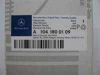 В оригинальной коробке MB A 104 180 01 09 лежит резиновое уплотнительное кольцо и маслянный фильтр фирмы Hengst с мерсономером A 104 184 08 25