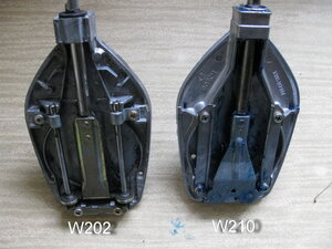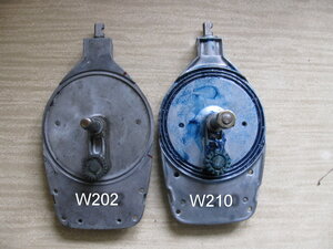 Разница в зубьях шестерни "черепахи" (материал пластик и там и там) на W202 их больше и они менее крупные, потому что диаметр звезд у W202 и W210 одинаковый и на раме стеклоочистителя у W202 зубьев соответственно больше. Разная конструкция направляющих в "черепахах" W202 и W210, если внимательно посмотреть на фото всё это прекрасно видно.
