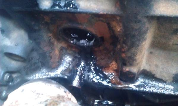 И вот что мы наблюдаем, октрутив болт. Забегая вперед, скажу, что увидев это, еще часа пол стояли у машины и обдумывали ситуацию - а эта муть продолжала течь.