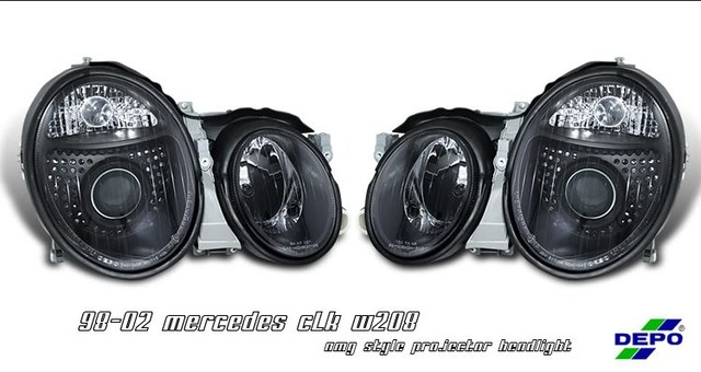 Наипрекраснейший комплект тюнинговых фар с чёрным отражателем на CLK 208, с новогодними ценами и прям под Новый Год - 22500 (2-5 дней).