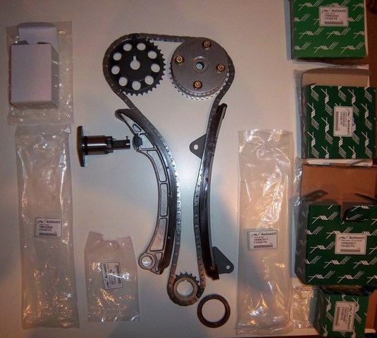 1.комплект ГРМ (включает в себя: три звезды, цепь, два успокоителя, натяжитель, сальник коленвала передний.) - AUTUWELT (германия) - 11100 (3 дня срок поставки)