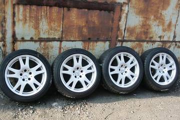 4 задних дисков 8.5 ЕТ30 одна пара обута в лето 245/40, передние 7.5 ЕТ38.