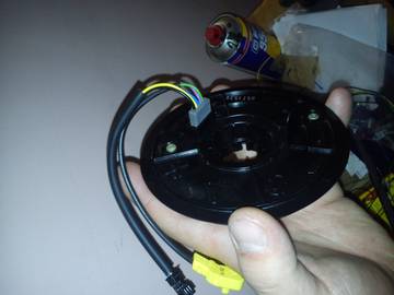 Начало: так как салон у меня полностью отсутствует массового демонтажа деталей удалось избежать. В другом случае пришлось бы вынимать приборку и снимать руль (перед снятием руль установить прямо!). А теперь самое интересное (опровержение мнения №2): Снимаем руль, отключаем провода и откладываем его в сторону. Перед нами сприлаль с торчащими из нее проводами. В двух круглых окошках сприрали видим два винтика под крестовую отвертку и смело их выкручиваем. Снимаем спираль потянув на себя. Перед нами предстанет желтая 4-х контактная фишка в которую втыкалась спираль.