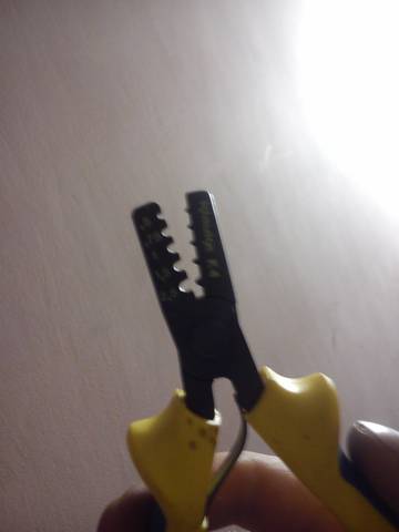 Для обжима контактиков нам потребуется кримпер. Берем три куска провода по пол метра, зачишаем миллиметра на три с обоих сторон и оппресовываем на них наконечники.