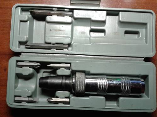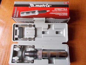 Ха - ха! Дим, умиляет то, что у меня ноль в ноль такая же ударная отвертка, с такой же комплектацией и в таком же в точности пластиковом футляре, с той только разницей, что у меня Советского производства и куплена была аж 24 года назад, в 1990 -м году! И до сих пор исправно работает, причем, испытывала на себе много раз удары не просто молотком, а кувалдой.