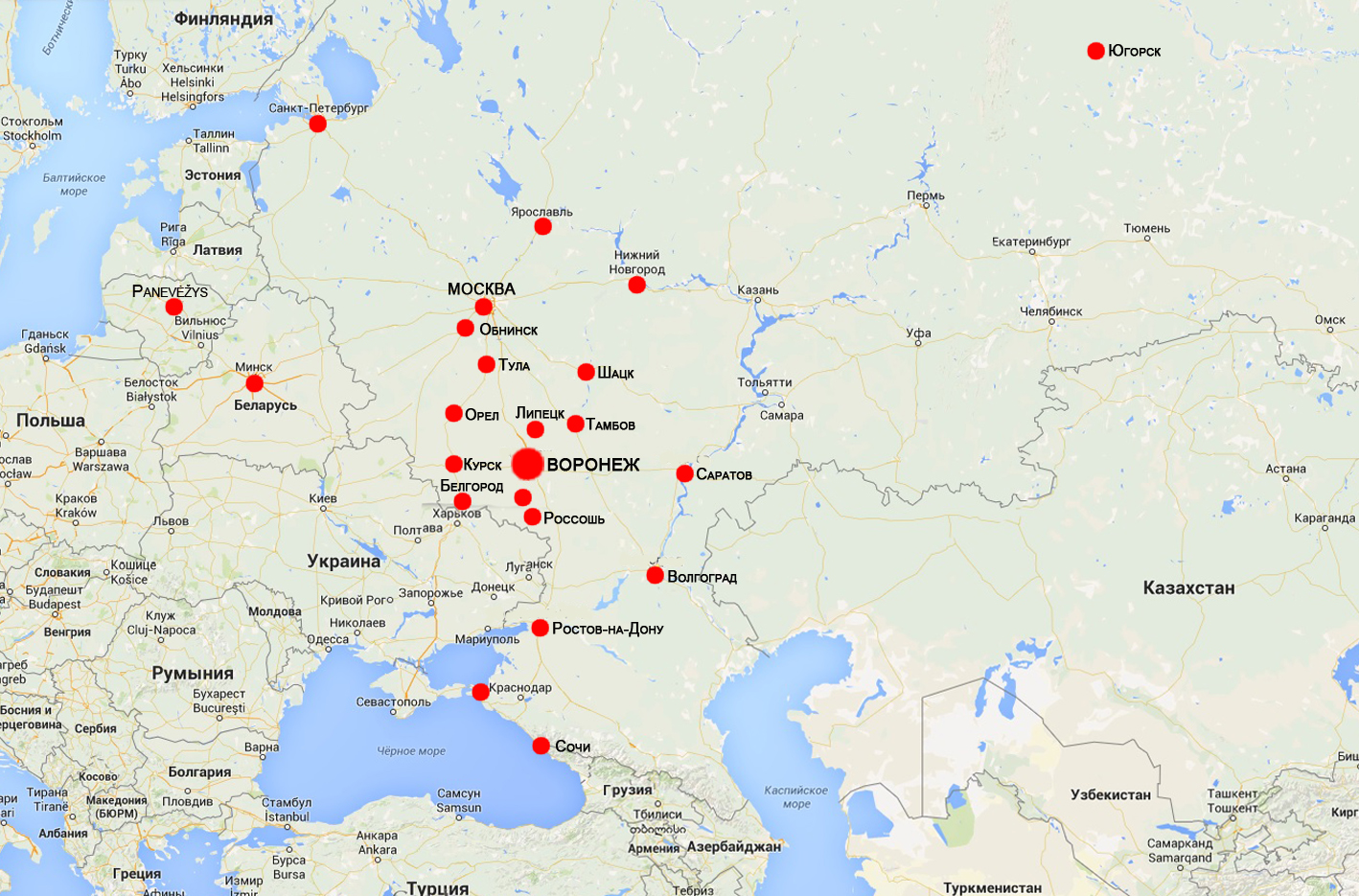 Воронеж, Москва, Санкт-Петербург, Ростов-на-Дону, Орел, Курск, Тула, Белгород, Липецк, Тамбов, Волжский, Острогожск, Темрюк, Югорск, Волгоград, Видное, Сочи, Шацк, Ярославль, Нижний Новгород, Зеленоград, Нововоронеж, Обнинск, Россошь, Саратов. А также гости из зарубежья Беларусь и Литва.