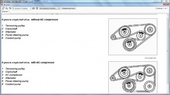 В центре ролика натяжителя (1) есть штырёк под головку torx E10. Давишь его против часовой стрелки, ремень ослабляется. Всё собственно.