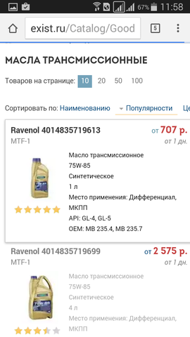 sledge hammer, из немногих вариантов остановился на нем- Масло трансмис.Ravenol MTF -1 SAE 75W-85 ( 1л) 4014835719613..... "...Mercedes MB235.7 A 0019893303; MB235.4 A 0019891403 "
