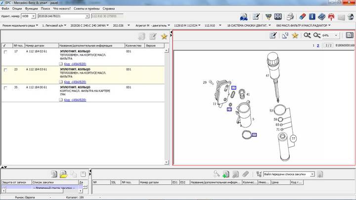 1) Была такая беда с маслом, замена обоих резинок на маслообменнике помогла (A 112 184 03 61 и A 112 184 02 61). Обе были дубовые и под одним было явно видно место неприлегания к корпусу).
