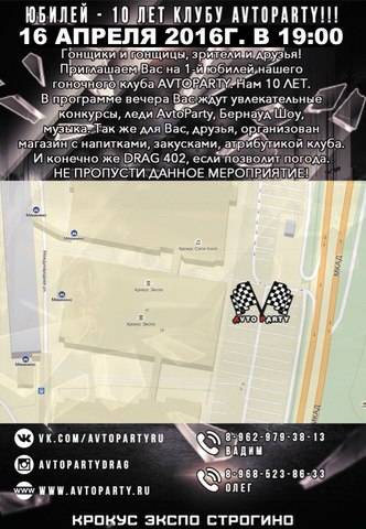 Москва - приглашаем желающих на праздник: Открытие сезона Avtoparty 16.04.2016