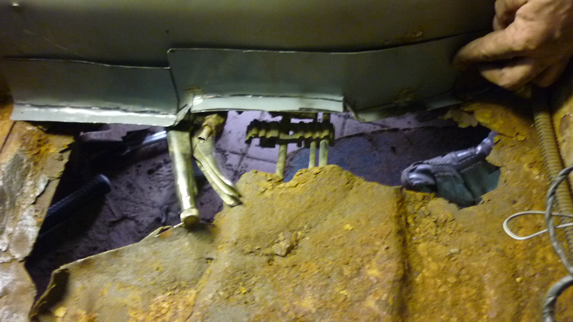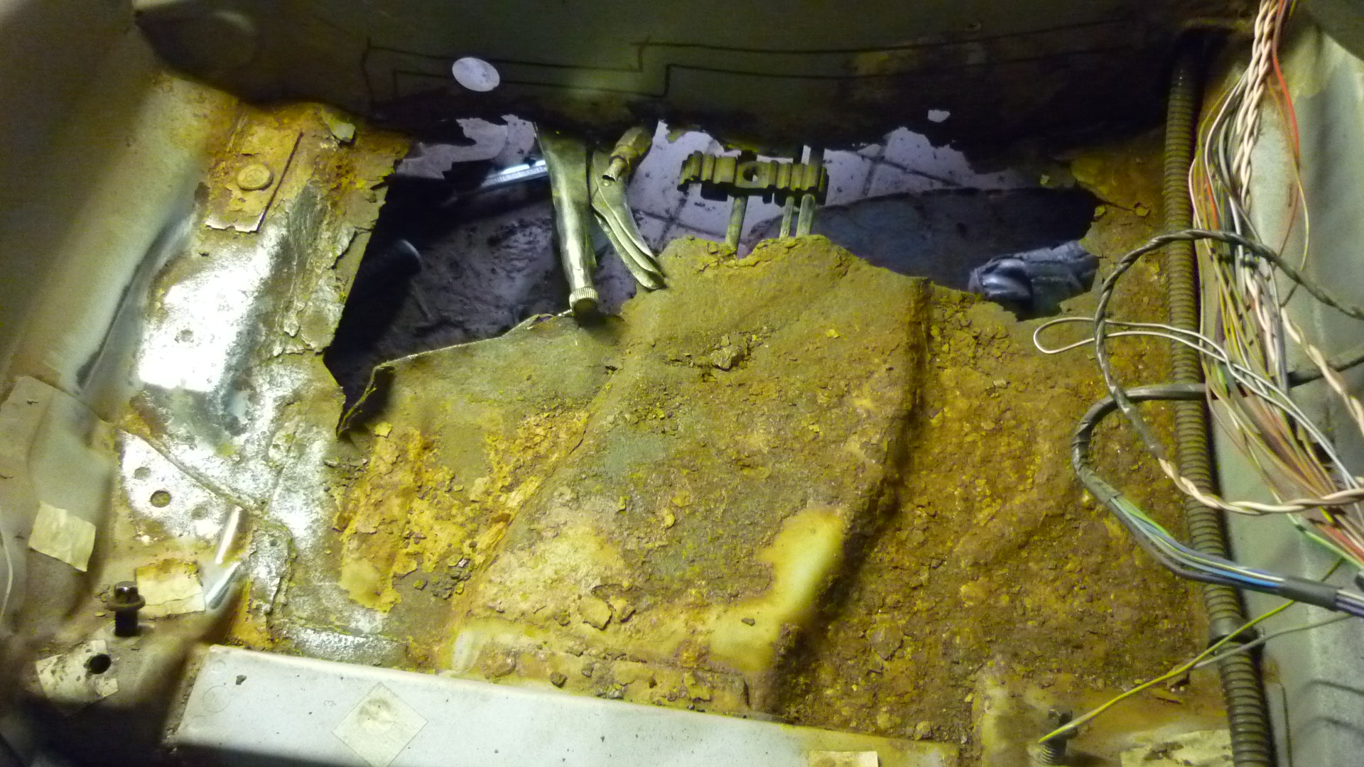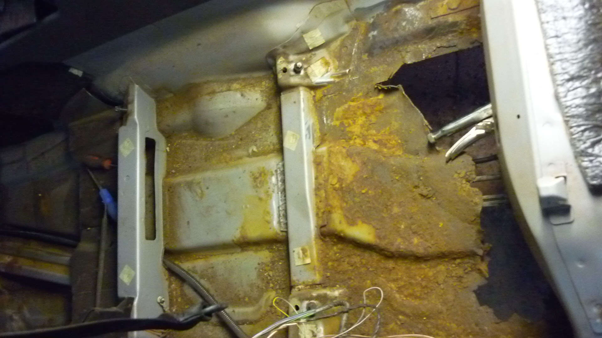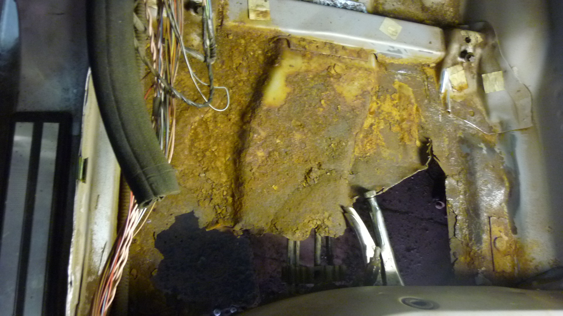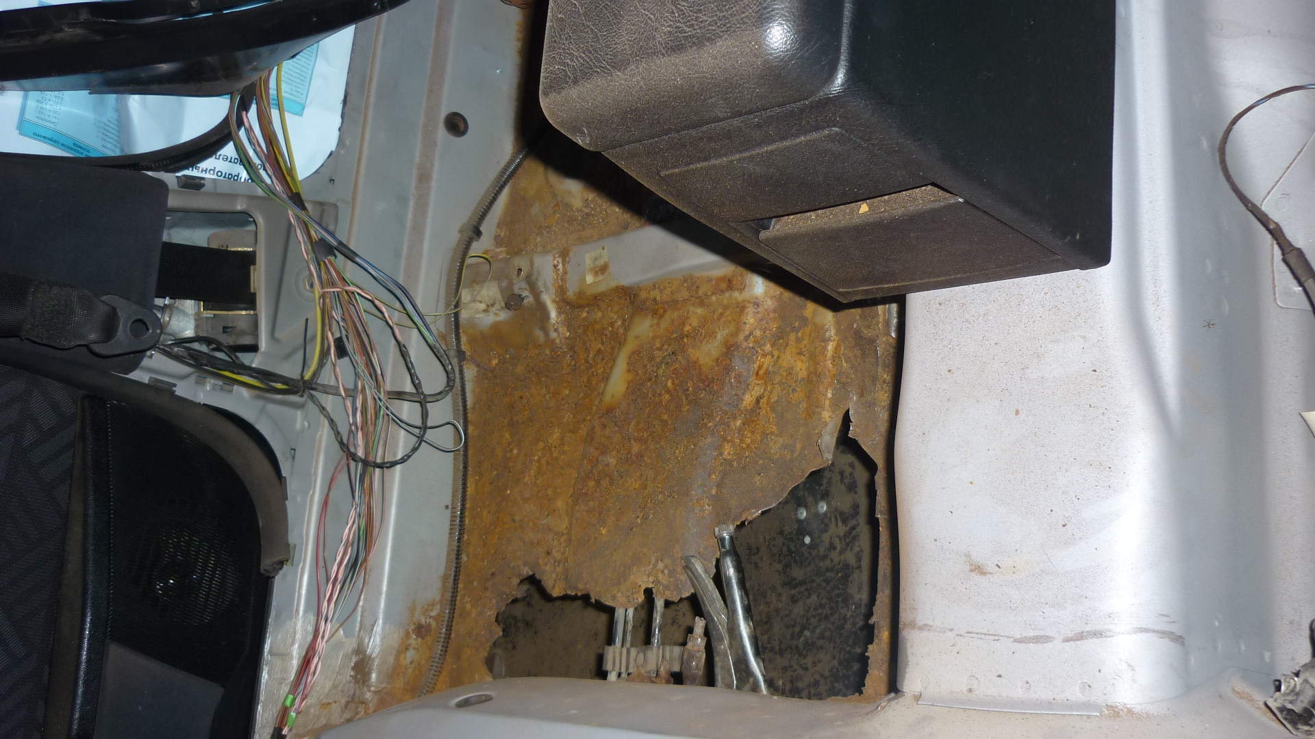 Пол пассажира за водителем.Снаружи проблемного места не видно, выявилось после снятия обшивки полов. Благодаря профессиональным навыкам Игоря (guron) делаем новый автомобиль! =)