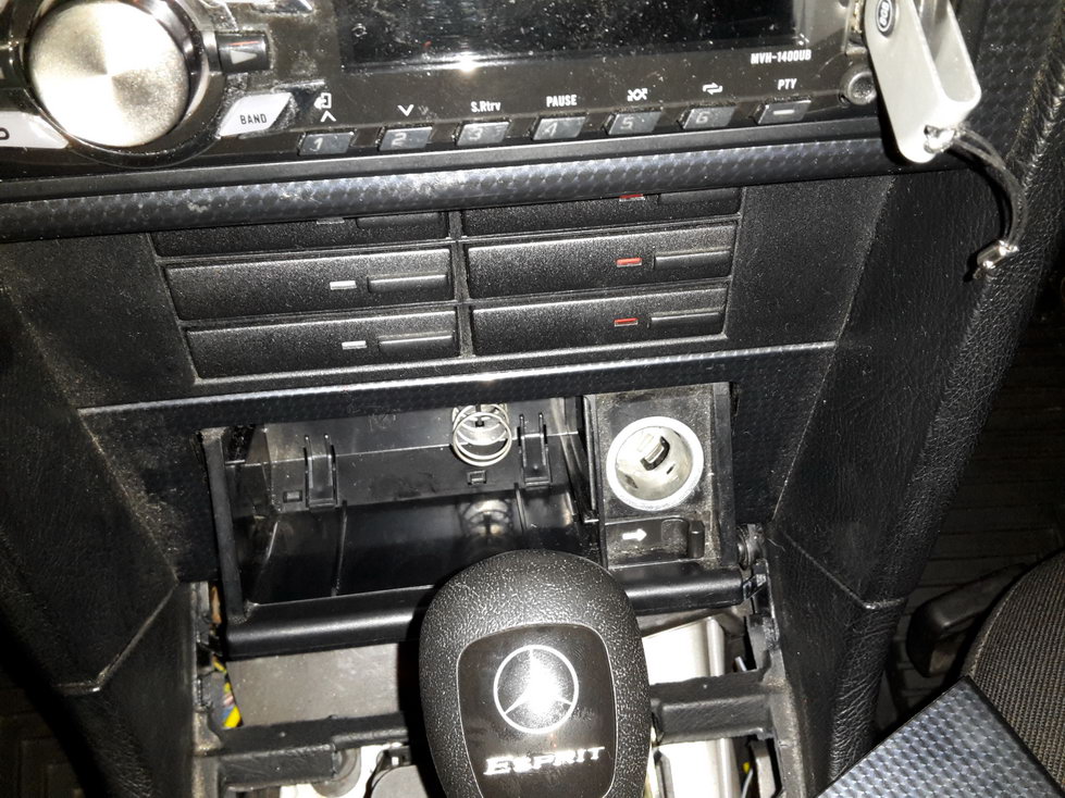 Нужно вытащить само гнездо прикуривателя и весь блок, куда вставляется пепелка. Снял полочку снизу, там только 2 винта крепящие консоль подлокотника.