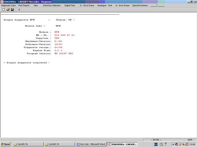 2.CarSoft МВ 7.6 - тест всех систем, стирание ошибок (Win'7).