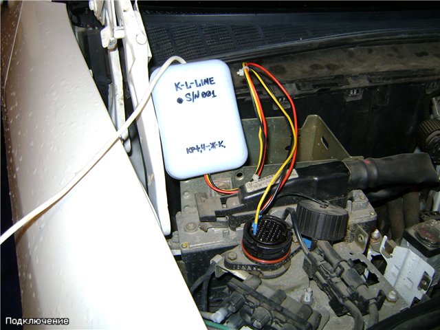К машине подключается 3-мя проводами: "+", "-", "k-line".